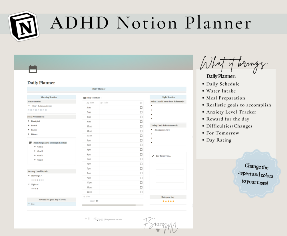 One of the key strengths of the ADHD Notion Planner is its ability to break down tasks and schedules into manageable and visually appealing formats. It provides various templates and frameworks that facilitate prioritization, goal-setting, and time management. Users can create to-do lists, set reminders, and establish routines to stay on track and meet deadlines effectively.