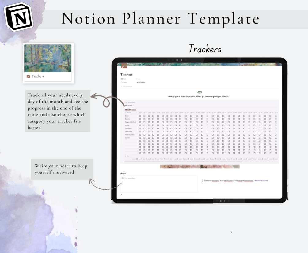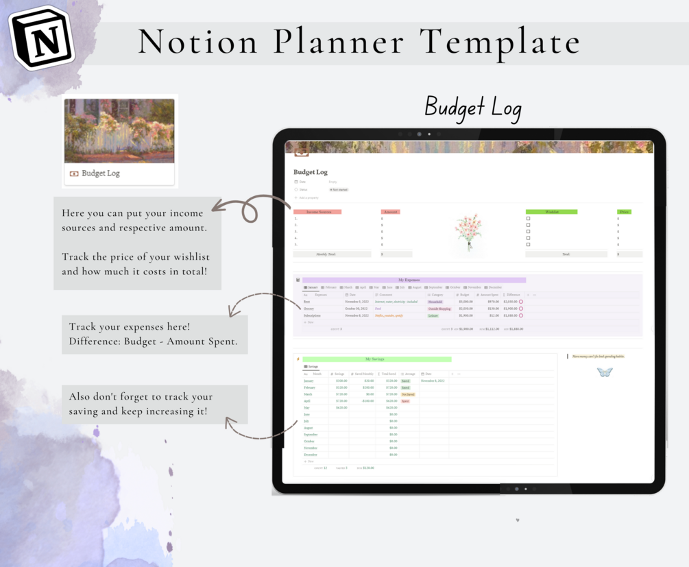 Notion, Notion Template, Personal Planner, Notion Dashboard, daily monthly yearly planner, budget log notion, trackers, gratitude, schedule, to-do list