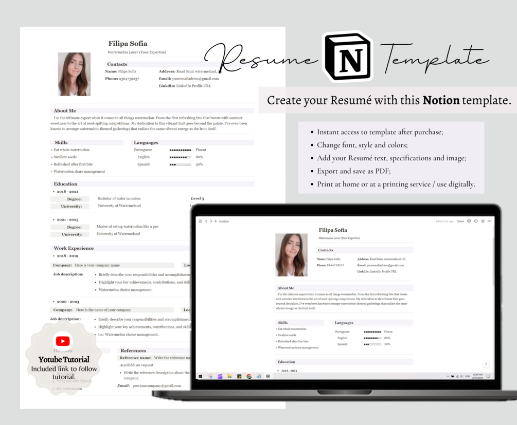 With its clean and organized layout, the Notion Resume Template allows you to showcase your skills, experiences, and accomplishments in a visually appealing manner. Impress potential employers with a resume that reflects your uniqueness and professionalism.