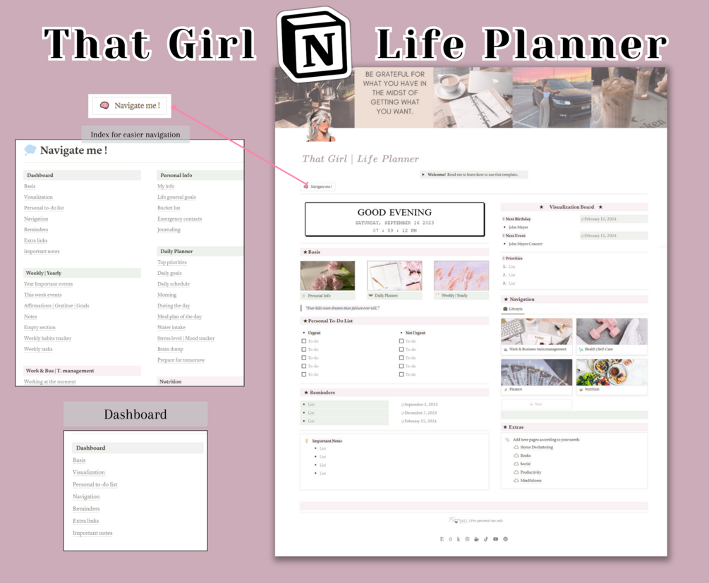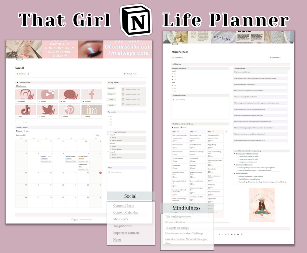 The template is available for purchase as a digital download, making it easy to import into a user's Notion account and start using right away. Why Choose the "That Girl - Life Planner" Notion Template?This Notion template is not just another organization tool; it's a lifestyle upgrade. It's perfect for students, professionals, entrepreneurs, and anyone striving to lead a more intentional life.